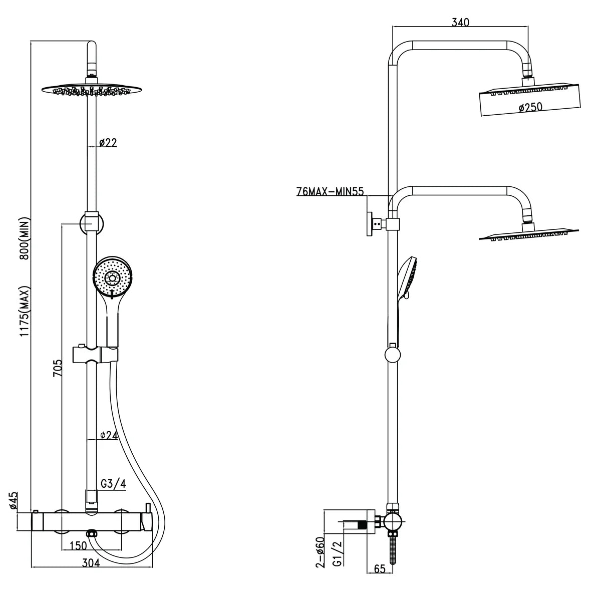Columna de grifería para ducha monomando Stillo Trevi Evo cromo rociador mural 2 vías Ø250mm.