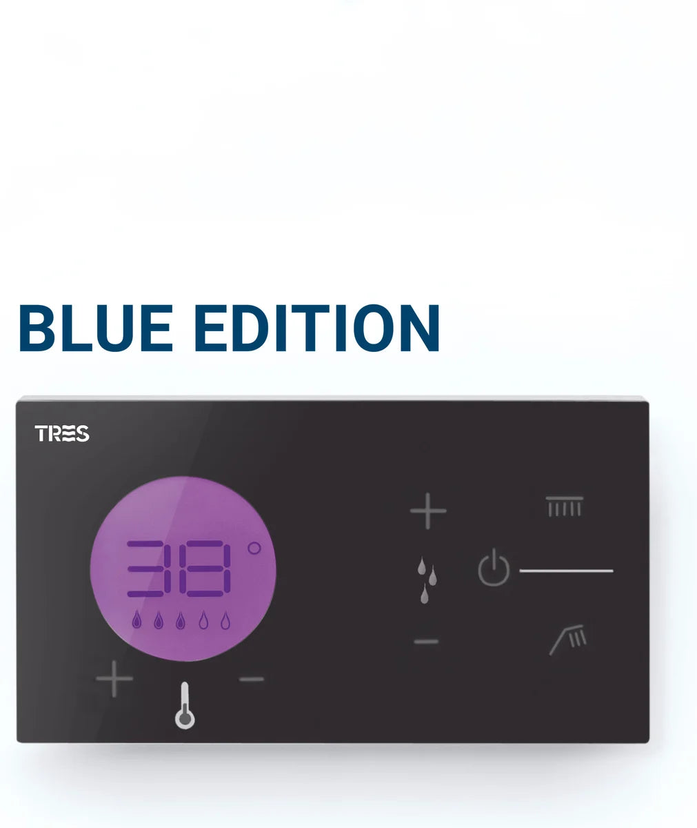 Conjunto ducha electrónica empotrada termostático Tres Shower Technology Exclusive Negro mate rociador mural 2 vías Ø300mm