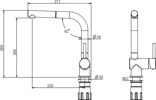 Grifo de cocina monomando para fregadero sobre encimera con caño extraible de Stillo.